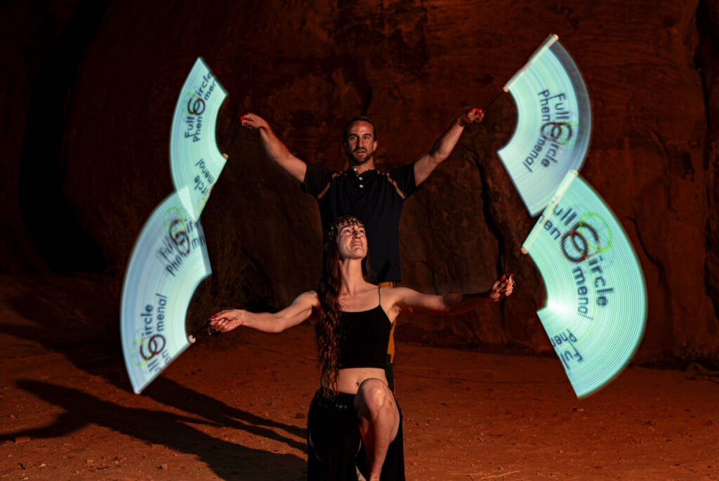 Flow arts and fire performing are an integral fractal of our career and daily drive. We perform world-class shows at special events and festivals around the globe. We offer workshops and private lessons that empower others to find their rhythm, courage, and creative spark. We have over 250 free tutorials online for you to begin and grow alongside us. Flowing props is more than just art—it’s a gateway to joy, confidence, health and freedom. It’s a meaningful career that we have taken to the highest level, going ever higher.